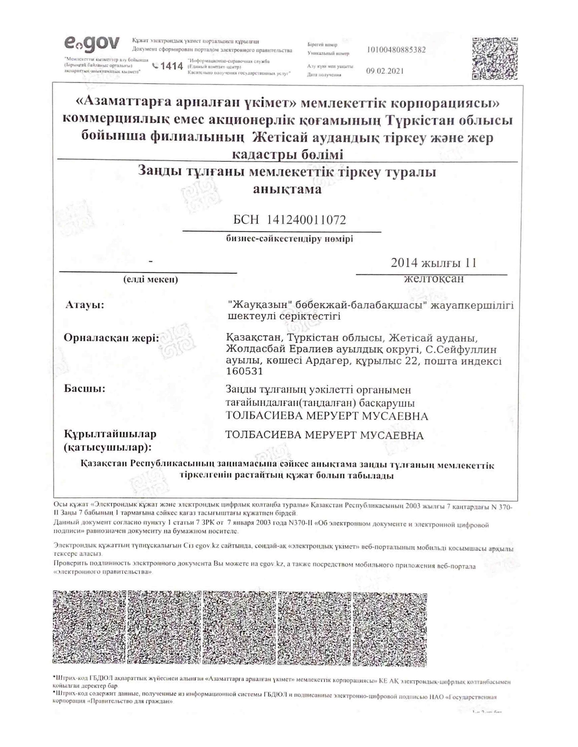 Балабақшаға тіркелу
