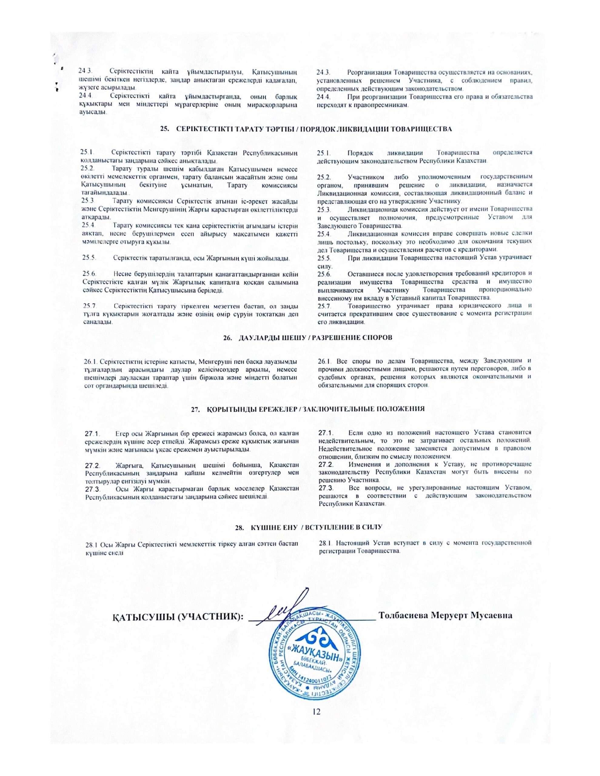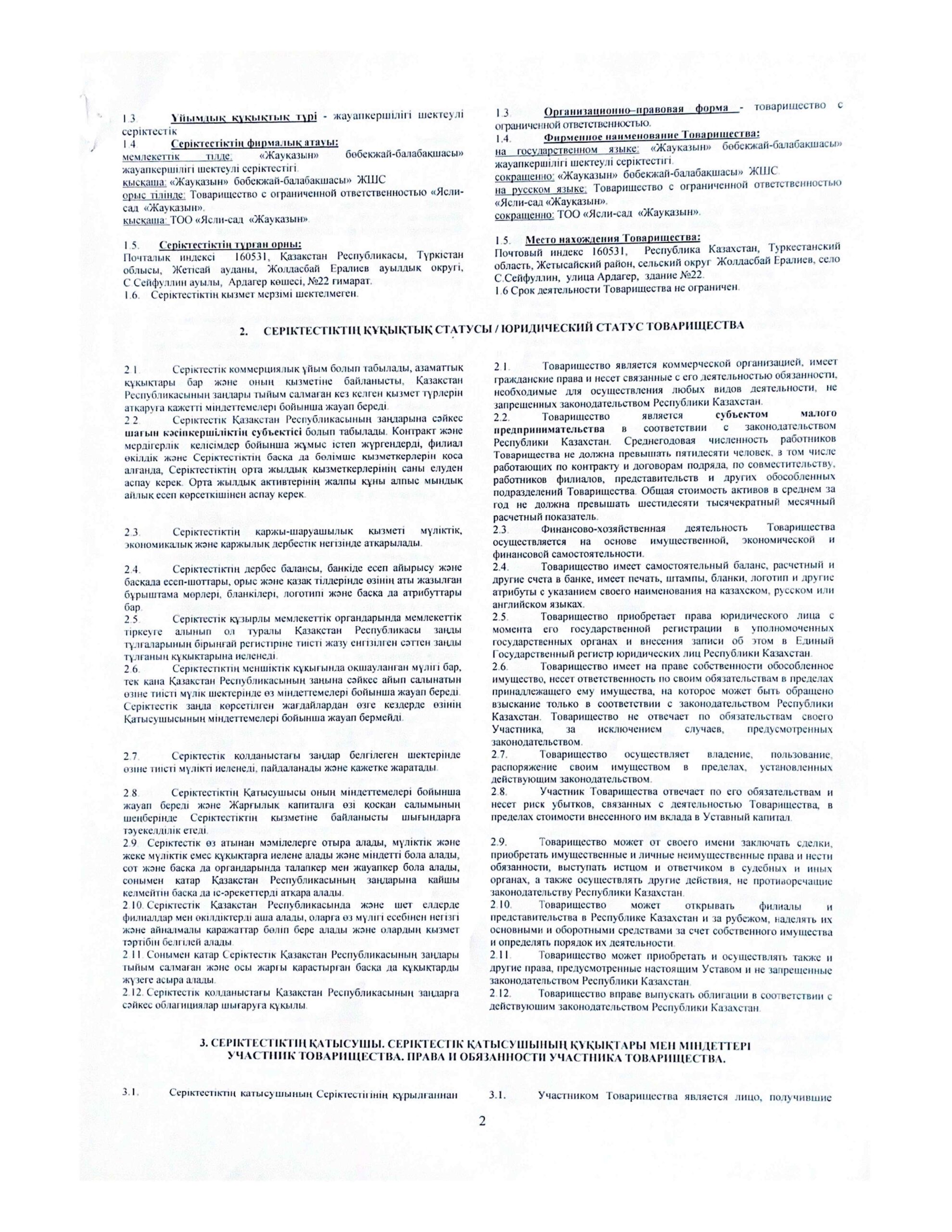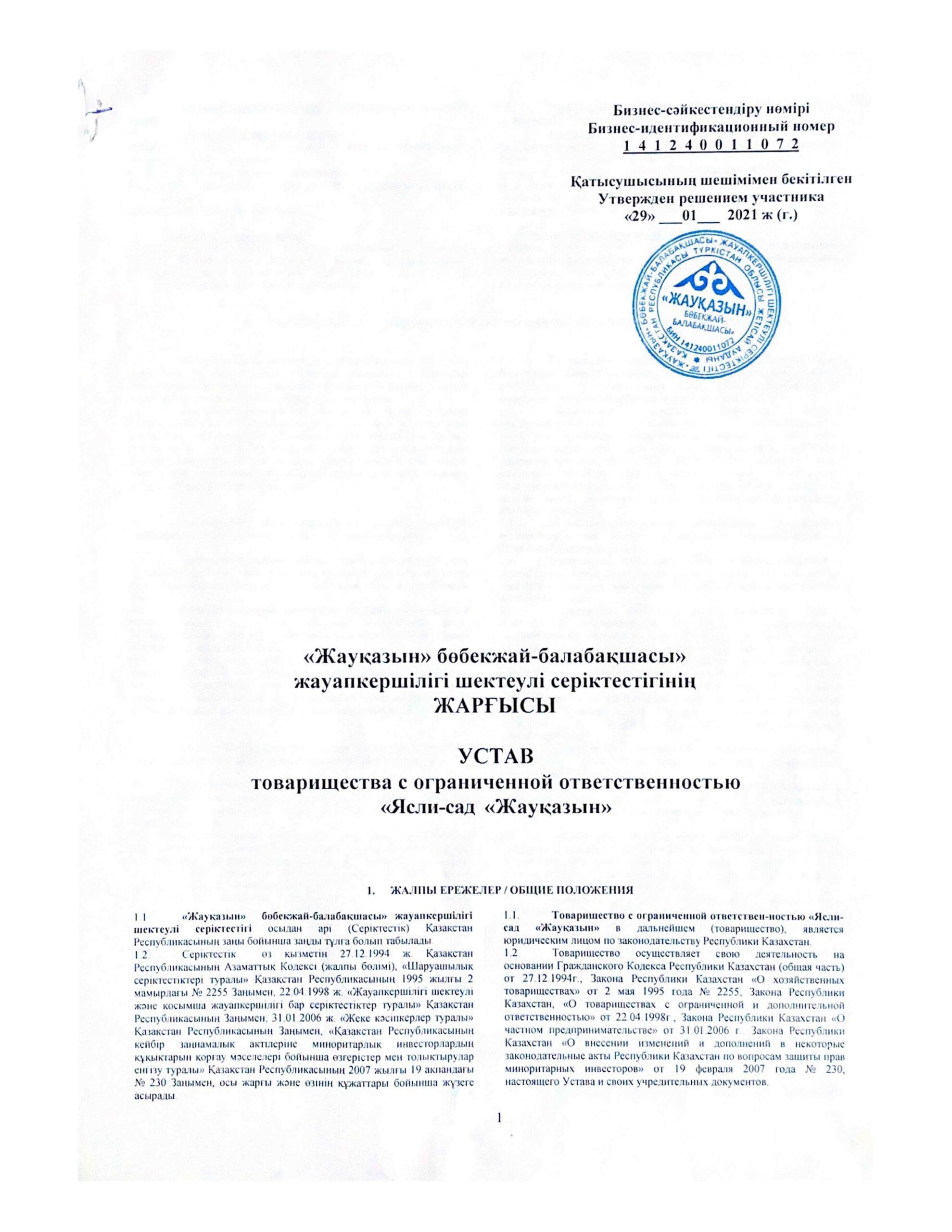 БСН және мекеме жарғысы