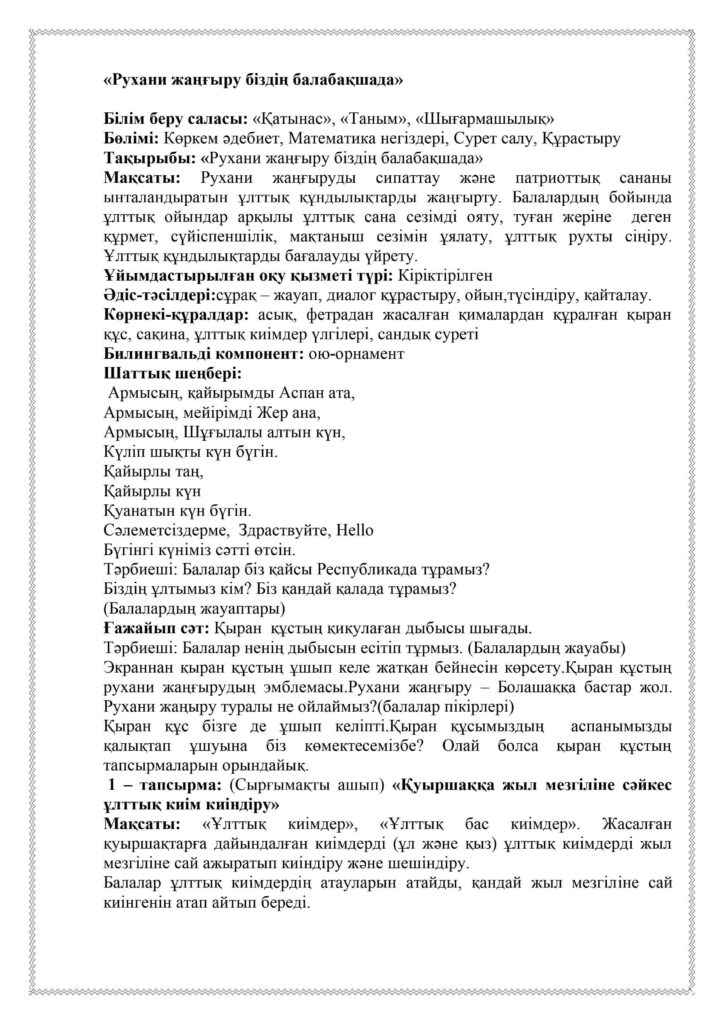 «Рухани жаңғыру» бағдарламасы іс-шаралары