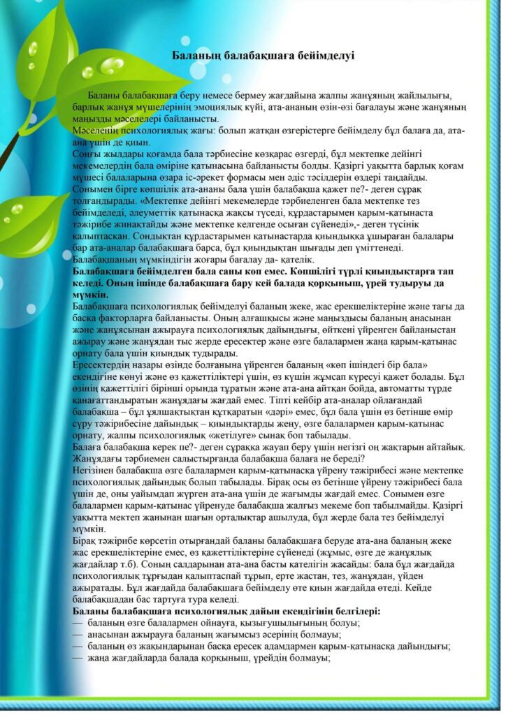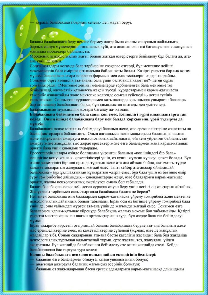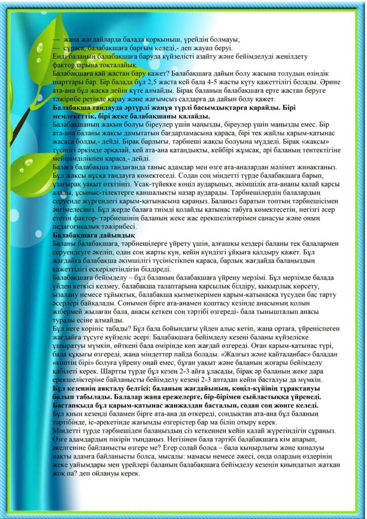 Баланың балабақшаға бейімделуі
